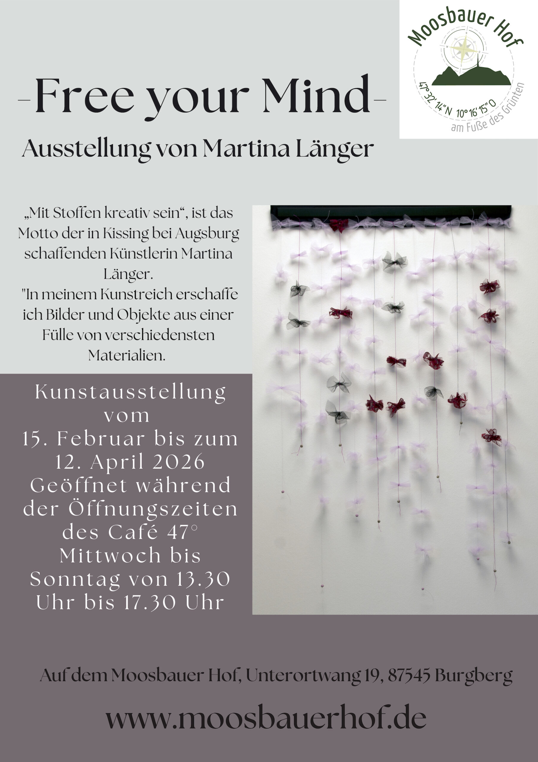 Plakat zu meiner Ausstellung „Free your Mind“ – Darauf ist der Titel „Lebenslinien“ zu sehen. Insgesamt stelle ich dort 15 Exponate aus.